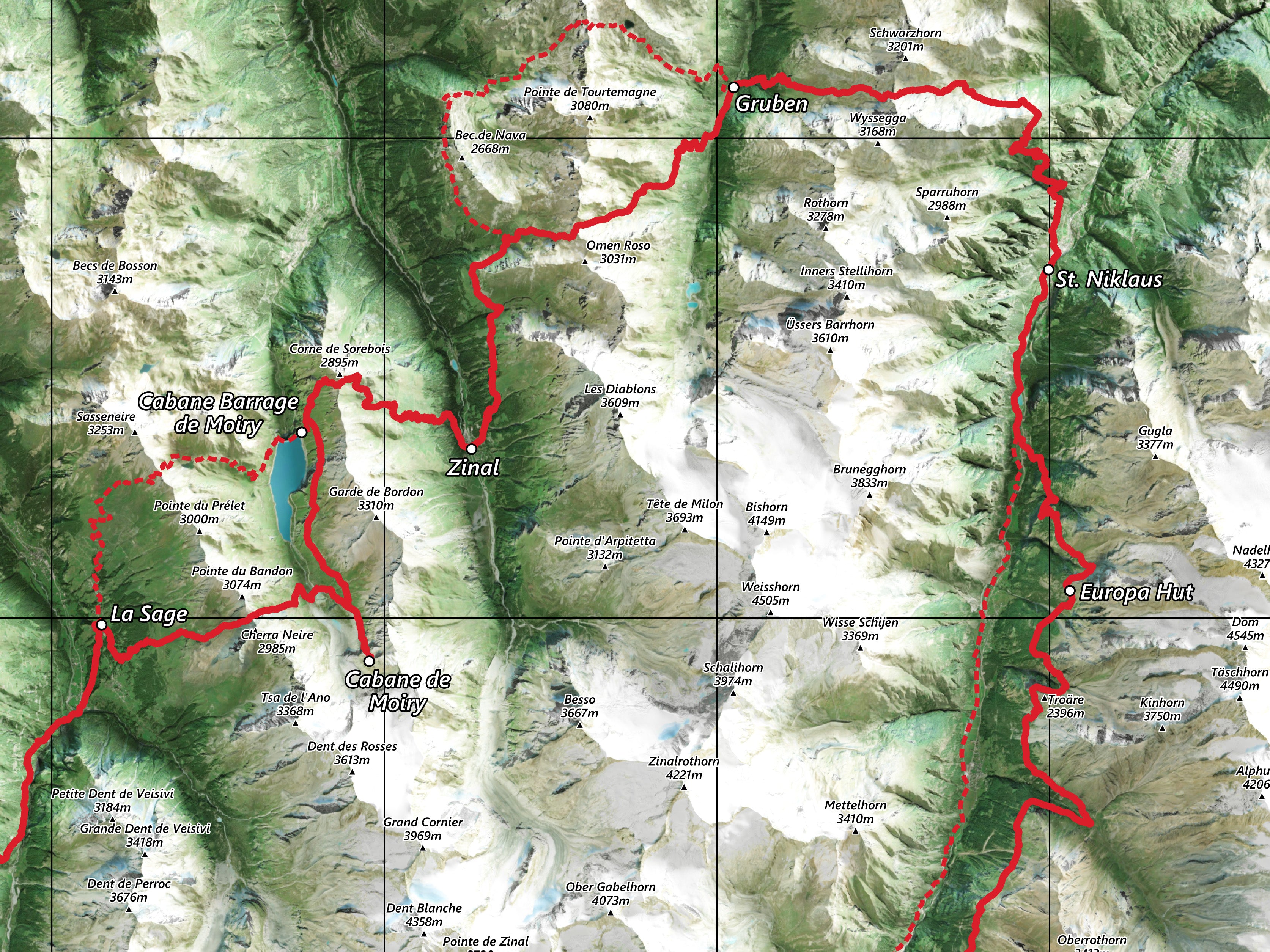 Walker's Haute Route Hike Map
